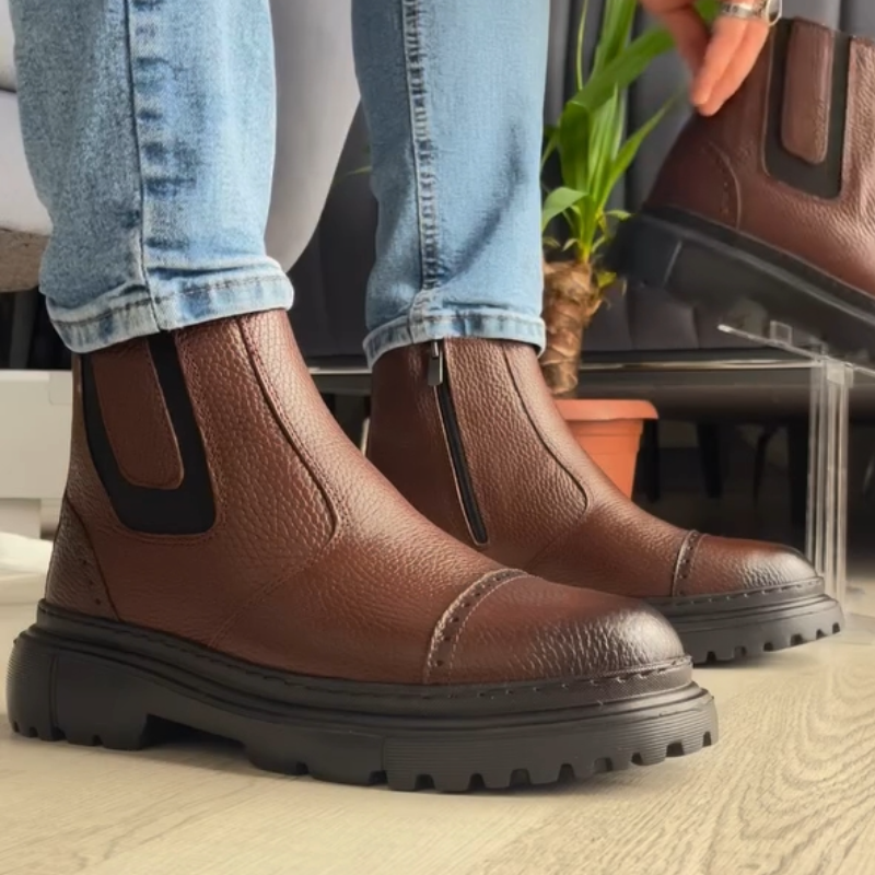 Genuine Leather Side-Zip Fleece-Lined Boots