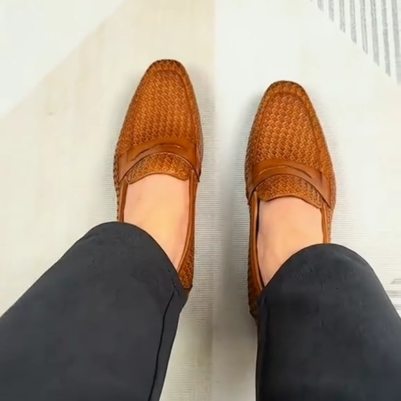 Handmade Men's Woven Brown Loafers