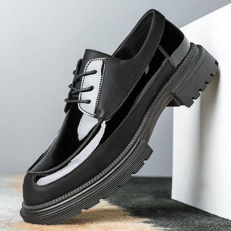 Mens Leather Fashion Lace Up Pumps Pointy Toe Shiny Wedding Loafers Shoes